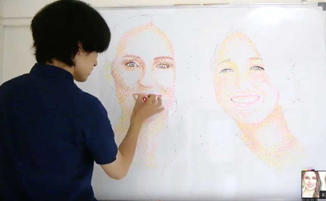 Whiteboard Pointillist Portraits by Toru Yano